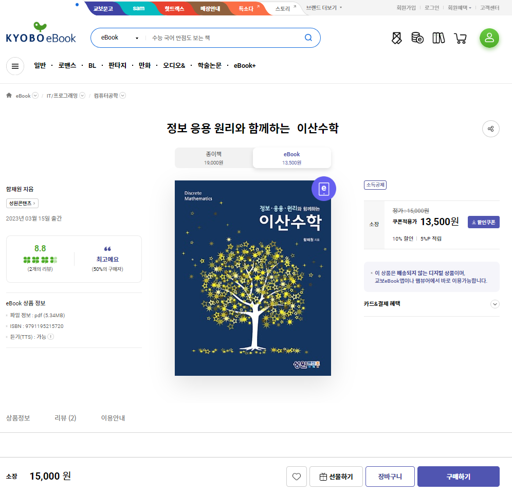 [이산수학] 전자책(교보문고) 2023년 3월 15일 출간되었습니다.